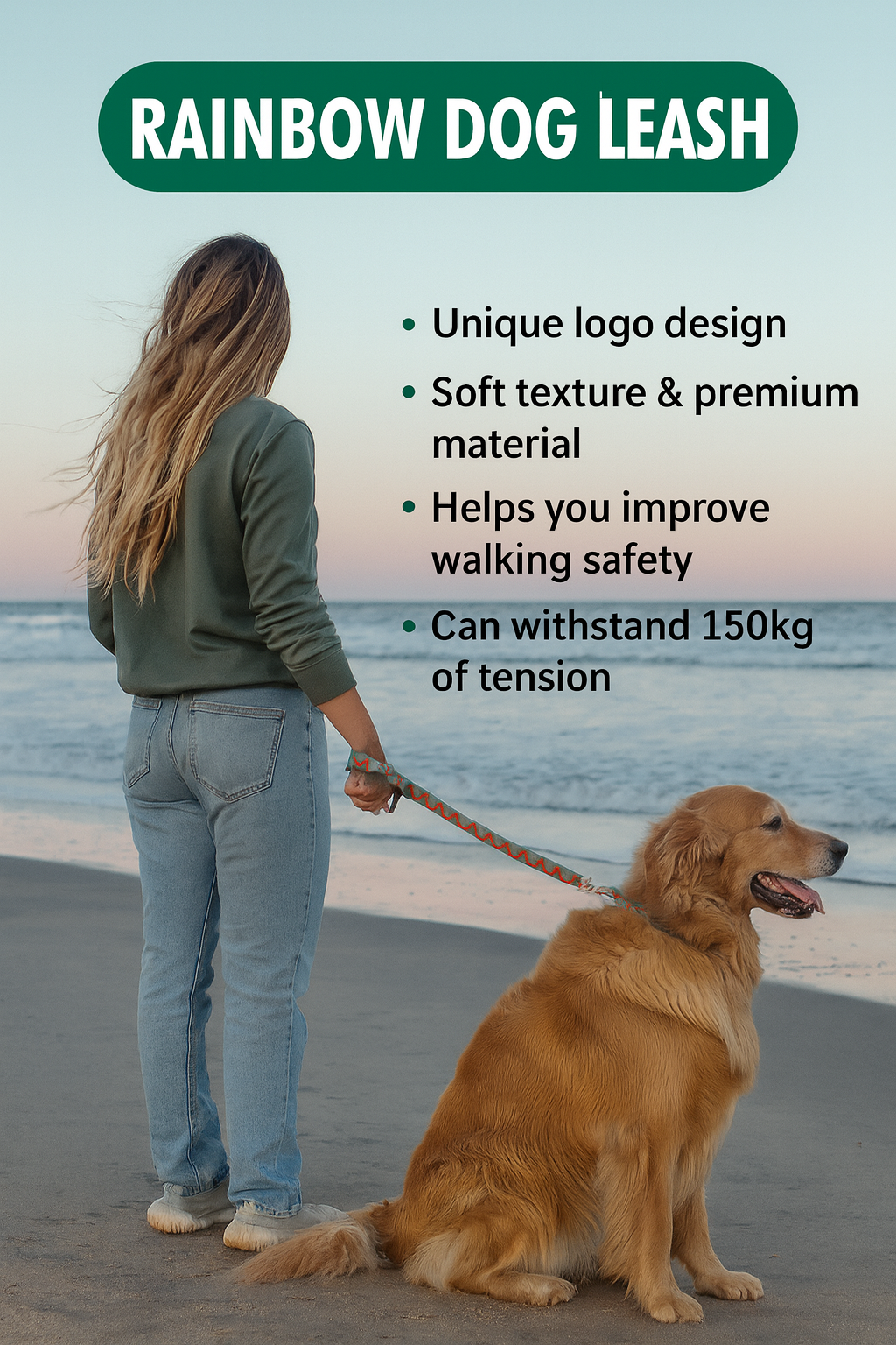 Walk your dog in style and comfort with the 🌈 Rainbow Series Dog Lead — a perfect mix of durability, safety and design. Made with high-density woven nylon, this leash feels...