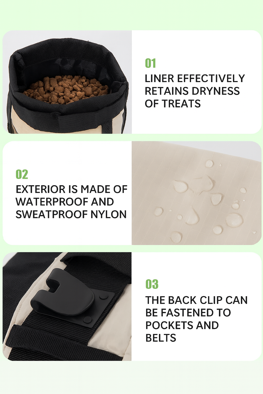 Get your hands on this practical and stylish pet snack bag today and make training and walks with your pet a breeze!