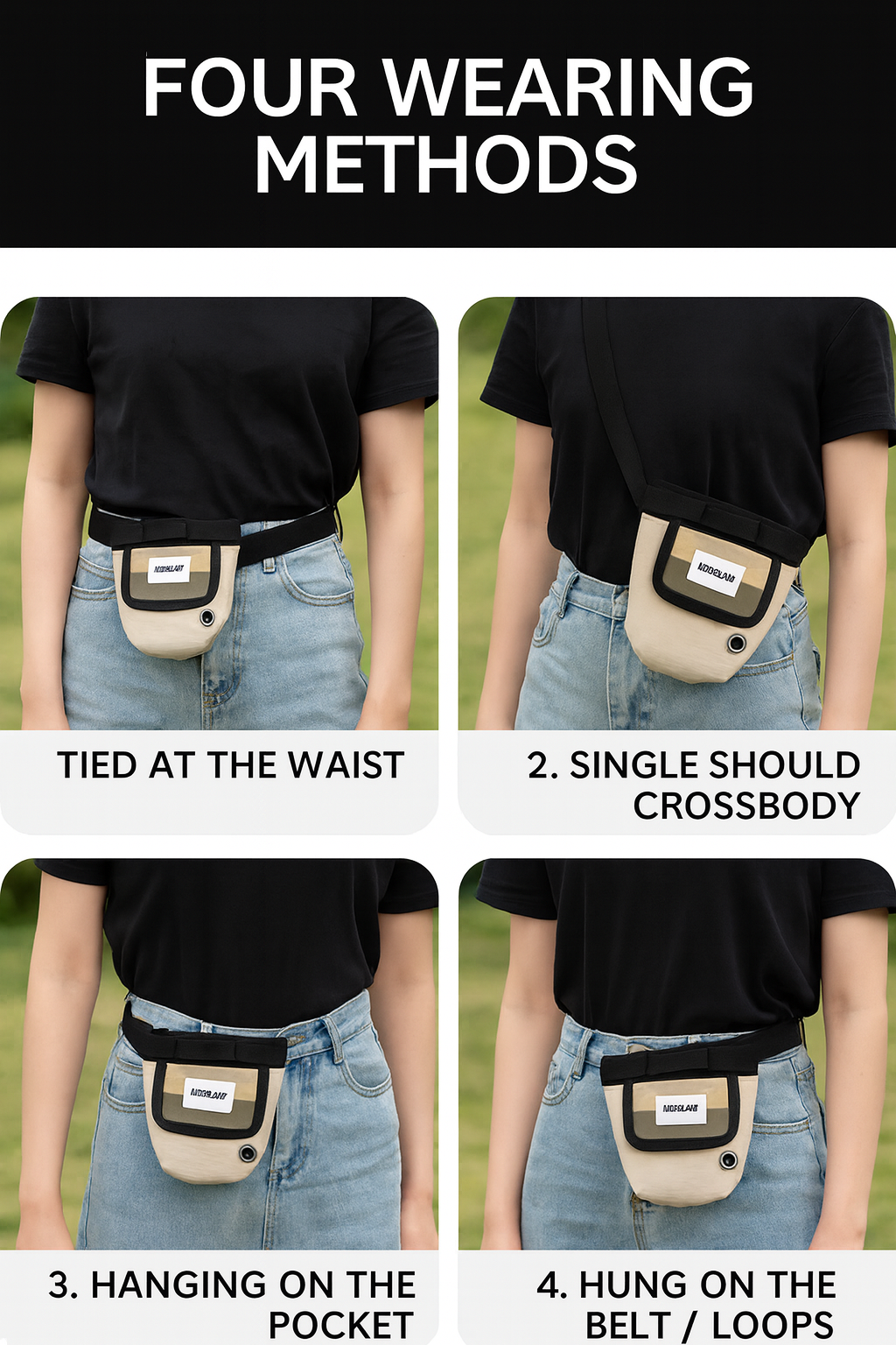 This bag can be worn in multiple ways - around the waist, slung over one shoulder, or clipped onto a belt or pants. This versatility makes it a must-have for any pet owner on the go.